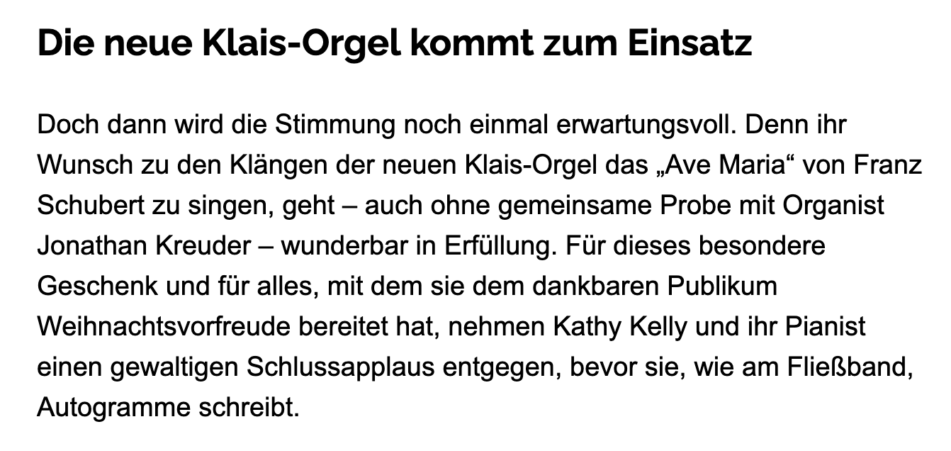 Die neue Klais-Orgel kommt zum Einsatz (aus: Kathy Kelly verzaubert mit Weihnachtskonzert in der Dankeskirche) - Frankfurter Neue Presse (02.12.2025)